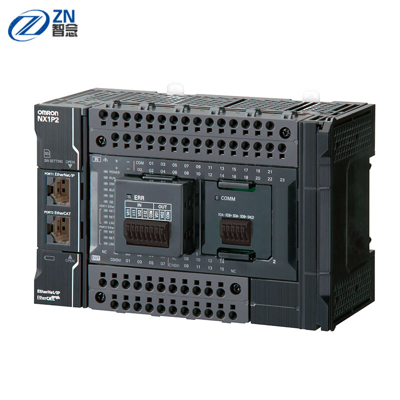 CPU Sysmac NX1P con 40 I/O digitali a transistor (PNP), memoria da 1.5 MB, EtherCAT (2 assi servo, 4 assi PTP, 16 nodi EtherCAT), EtherNet/IP e 2 porte seriali opzionali